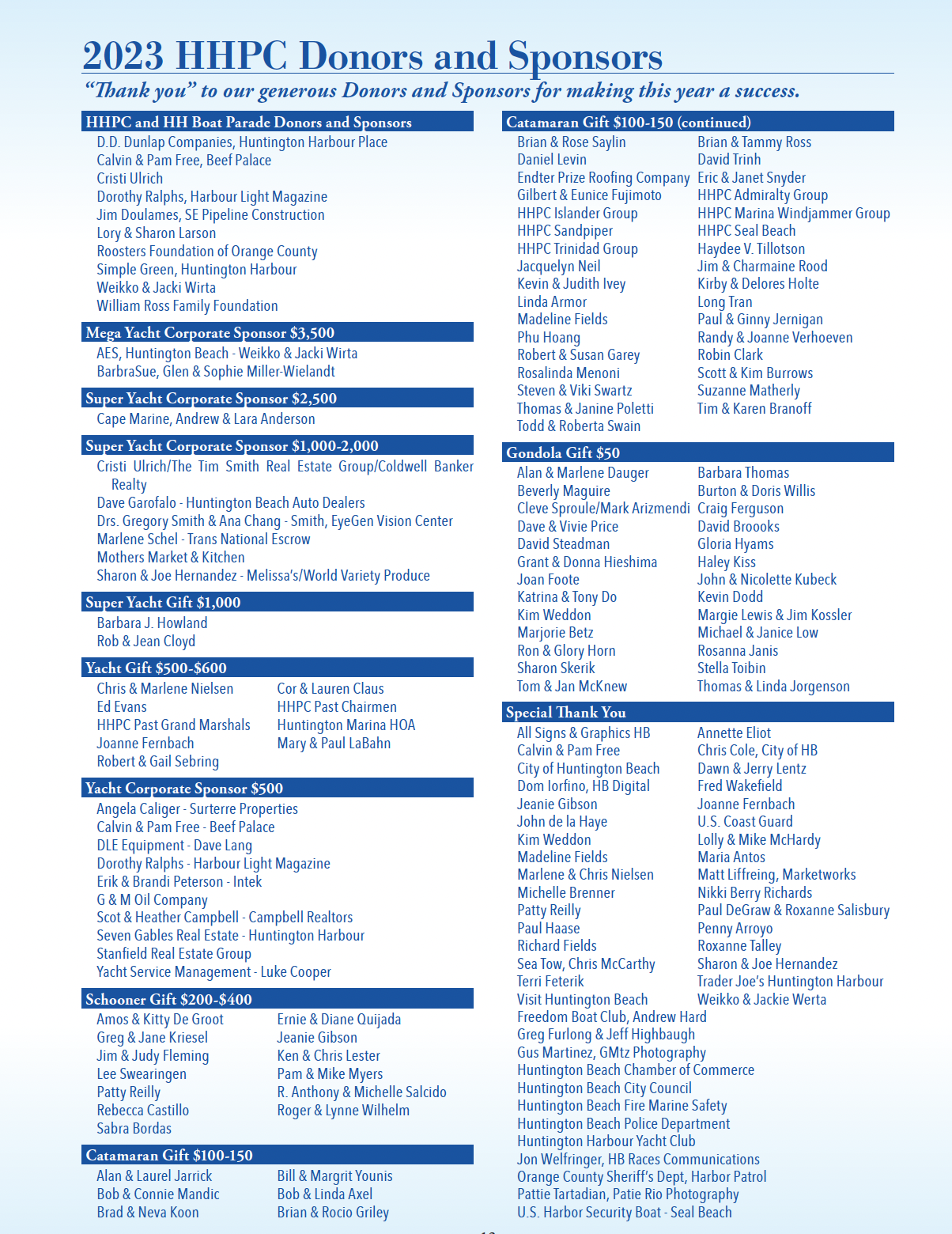 As you might imagine, the Boat Parade doesn’t just happen. It requires hundreds of hours of planning, plus a large amount of money to pay for expenses such as trophies for our winners, engraving, printing, postage, banners & numbers, etc. We need your help with expenses for this year’s boat parade. Any excess funds will go toward the Philharmonic Society’s music education programs for the children of Orange County. Donors of $50 or more will be listed in the Harbour Light Magazine; however, any amount will be much appreciated. Thank you in advance!